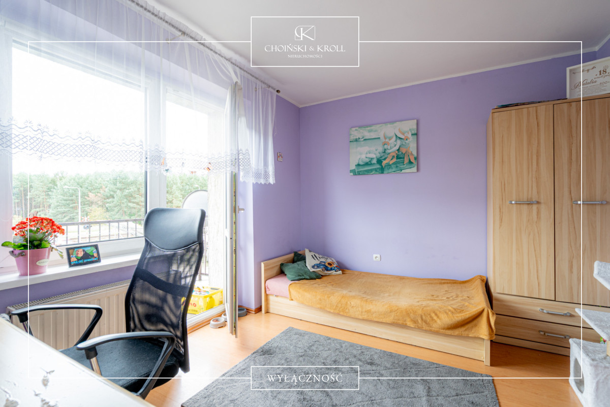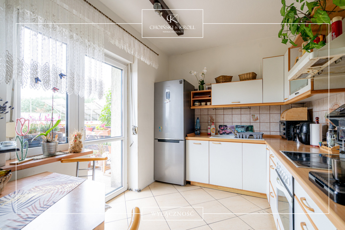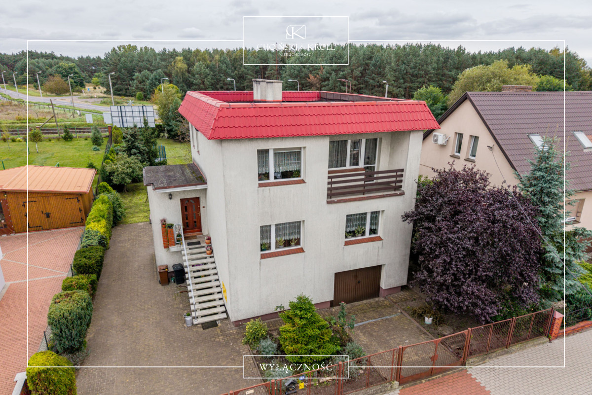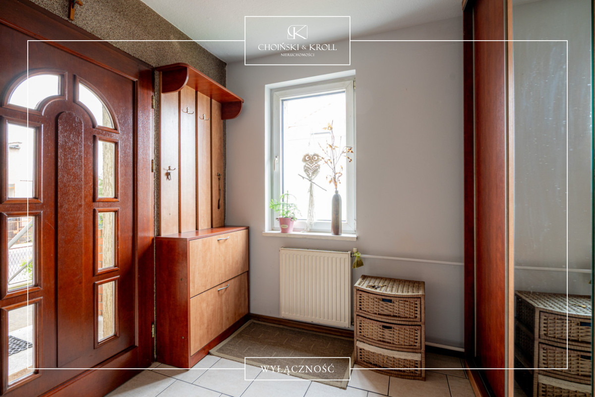 Dom składa się z czterech przestronnych pokoi, oddzielnej kuchni oraz jadalni, która stanowi idealne miejsce do rodzinnych posiłków. Do dyspozycji są także toaleta i łazienka, a cały budynek jest w pełni podpiwniczony, co daje dodatkową przestrzeń do przechowywania lub aranżacji według potrzeb. W salonie znajduje się przytulny kominek, tworzący ciepłą i wyjątkową atmosferę.