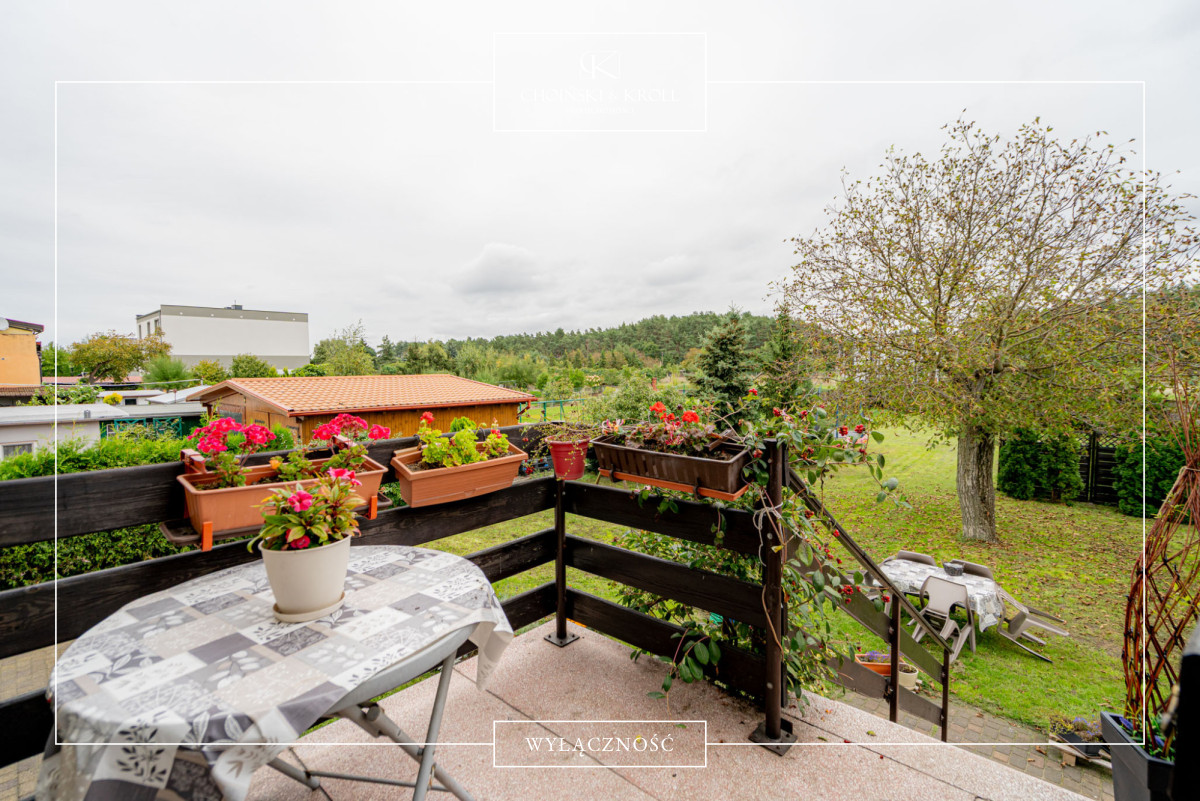 Nieruchomość posiada garaż, taras oraz dwa balkony, pozwalające cieszyć się widokiem na ogród i relaksem na świeżym powietrzu. Dodatkowym atutem są dwie bramy wjazdowe - od ul. Mikołaja Reja i ul. Dożynkowej, które zapewniają wygodny dostęp do posesji.