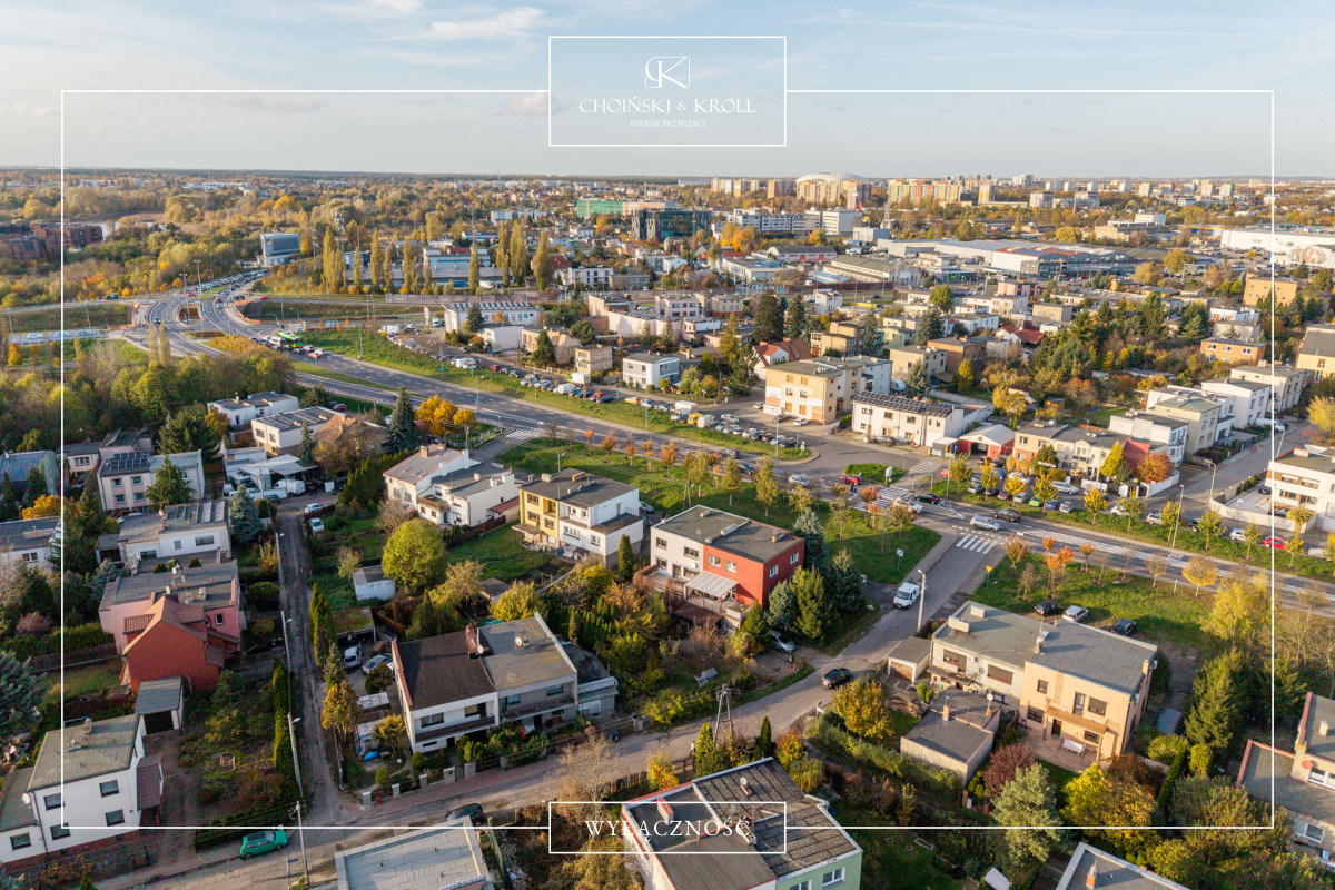 Dom zbudowany jest na działce o powierzchni 380 m2, do której przylega druga, mniejsza działka o powierzchni 82m2 (w sumie 462m2). Za domem, od strony południowej znajdziemy ogród z krzewami, drzewami owocowymi oraz własną studnią. Niecały kilometr na południe od działki znajdują się poznańskie Szachty - idealne miejsce rekreacyjne dla miłośników przyrody i odpoczynku na łonie natury.