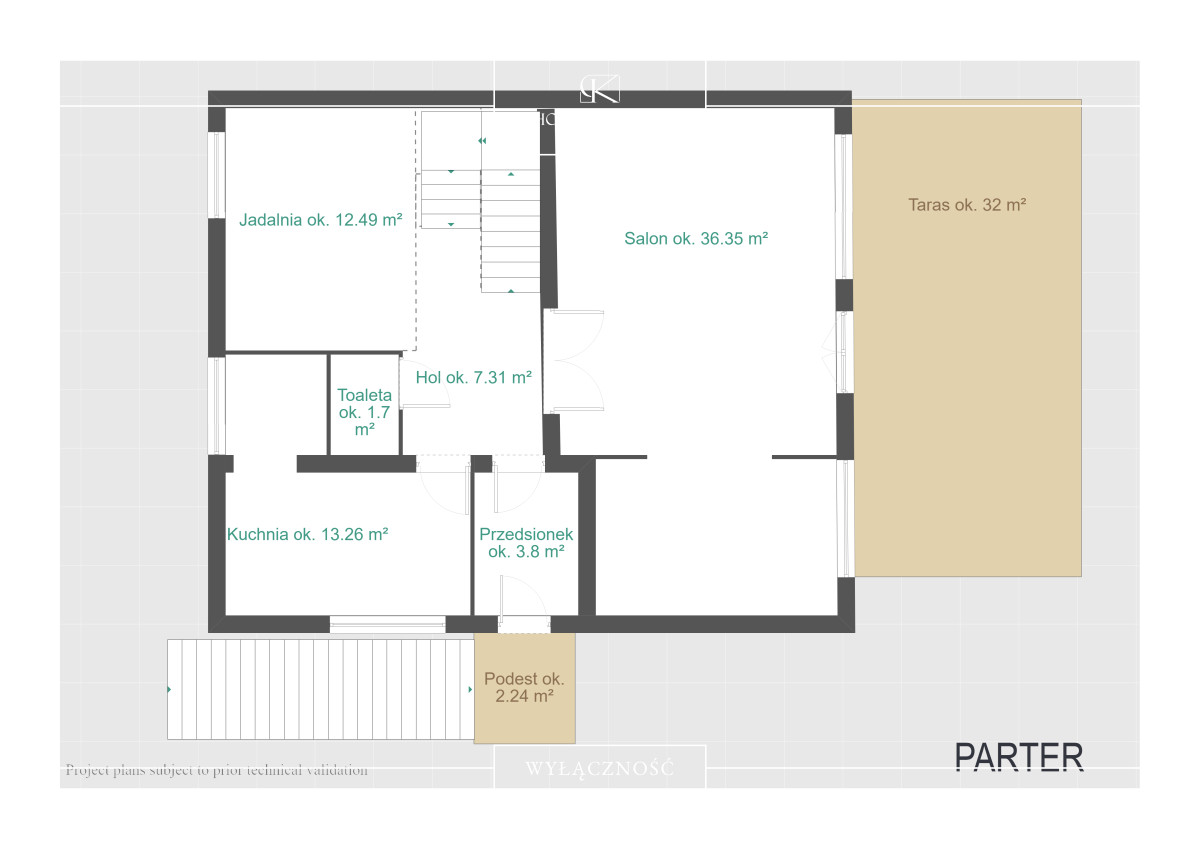 Parter (wysokość pomieszczeń ok. 2,68 m; powierzchnia użytkowa ok. 74,91 m2) :