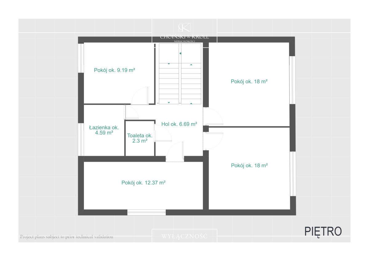 Piętro (wysokość pomieszczeń ok. 2,55 m; powierzchnia użytkowa ok. 71,14 m2):