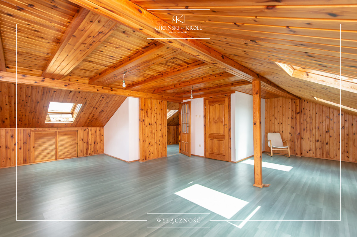 Poddasze wysokość 2,3 m idealne na pracownię biuro lub królestwo nastolatka obejmuje: