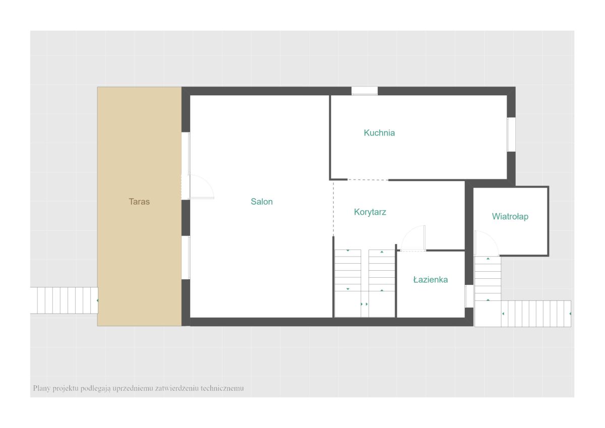 Przyziemie wysokość 2,4 m obejmuje następujące pomieszczenia: