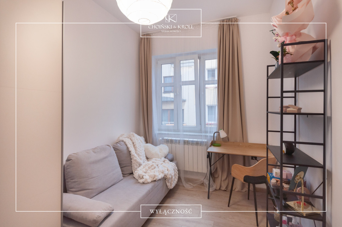 Obecnie jeden z pokoi jest wynajmowany, jednak najemca został poinformowany o planowanej sprzedaży mieszkania. W razie potrzeby zobowiązał się do wyprowadzki z zachowaniem jednomiesięcznego okresu wypowiedzenia.