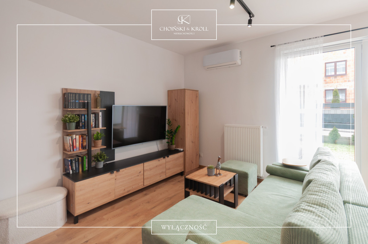 Polecam komfortowe, klimatyzowane mieszkanie o powierzchni 43,6 m², położone na parterze budynku z 2023 roku, na zamkniętym i monitorowanym osiedlu.