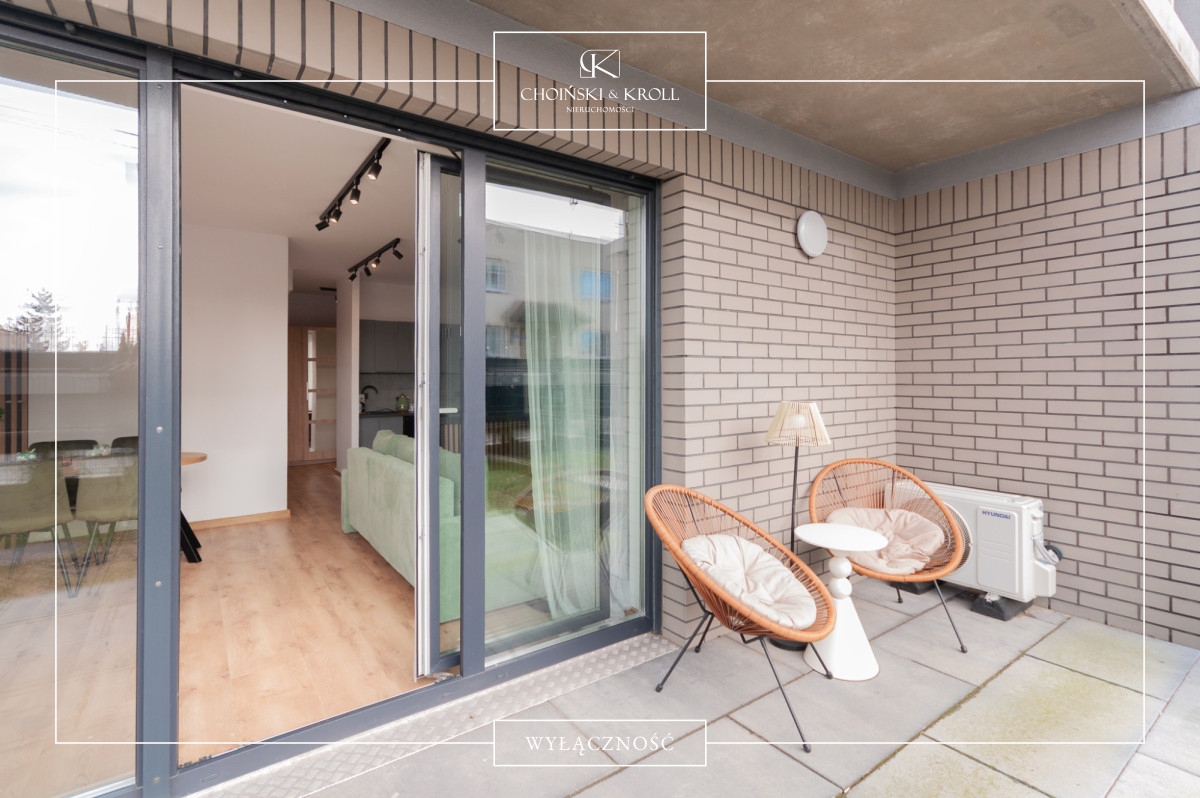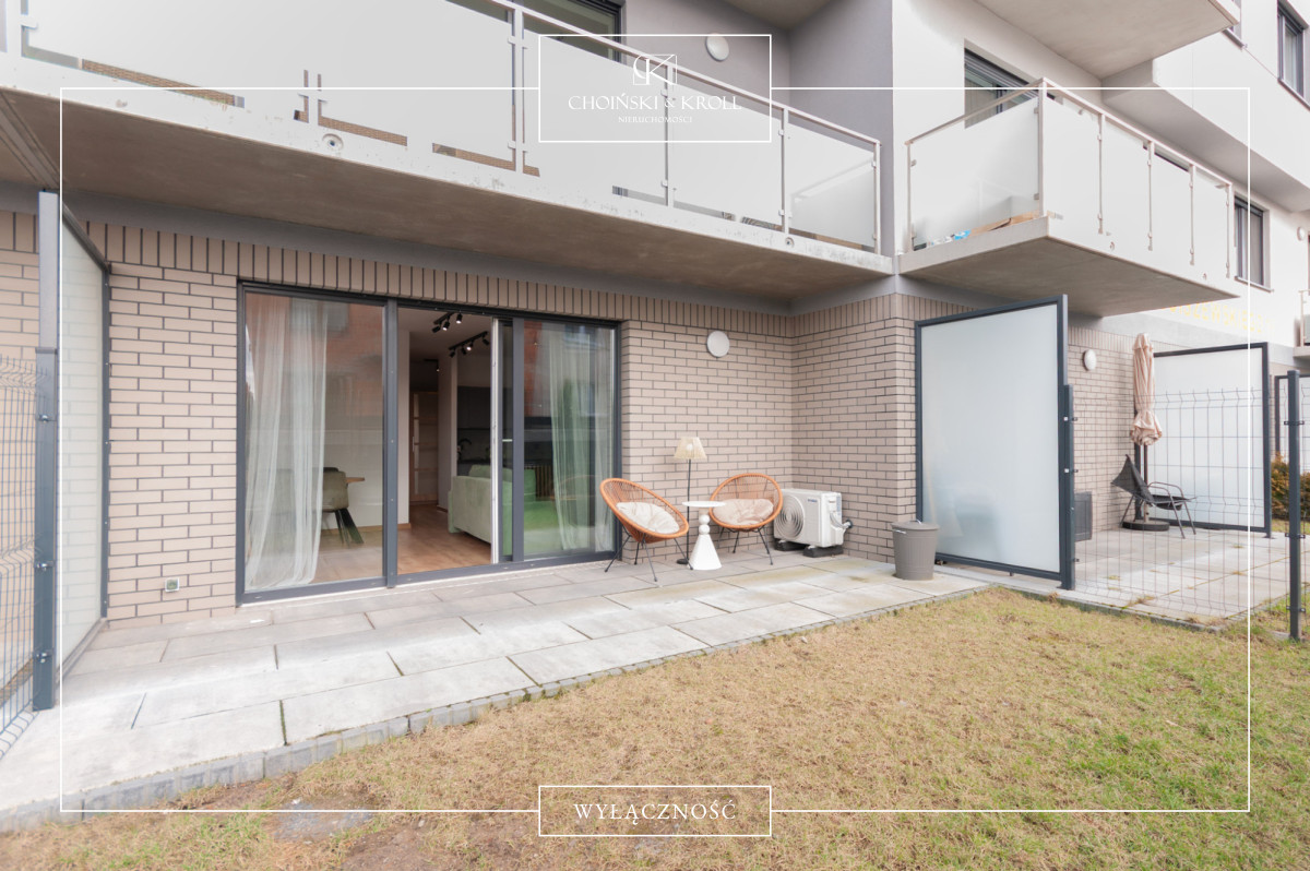 Do mieszkania przynależy taras z ogródkiem, który zapewnia prywatną przestrzeń do wypoczynku i stanowi dodatkowy komfort w codziennym użytkowaniu.