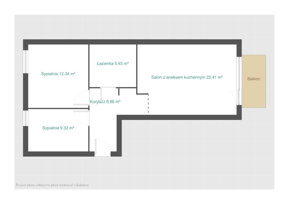 • sypialni - 12,34 m2