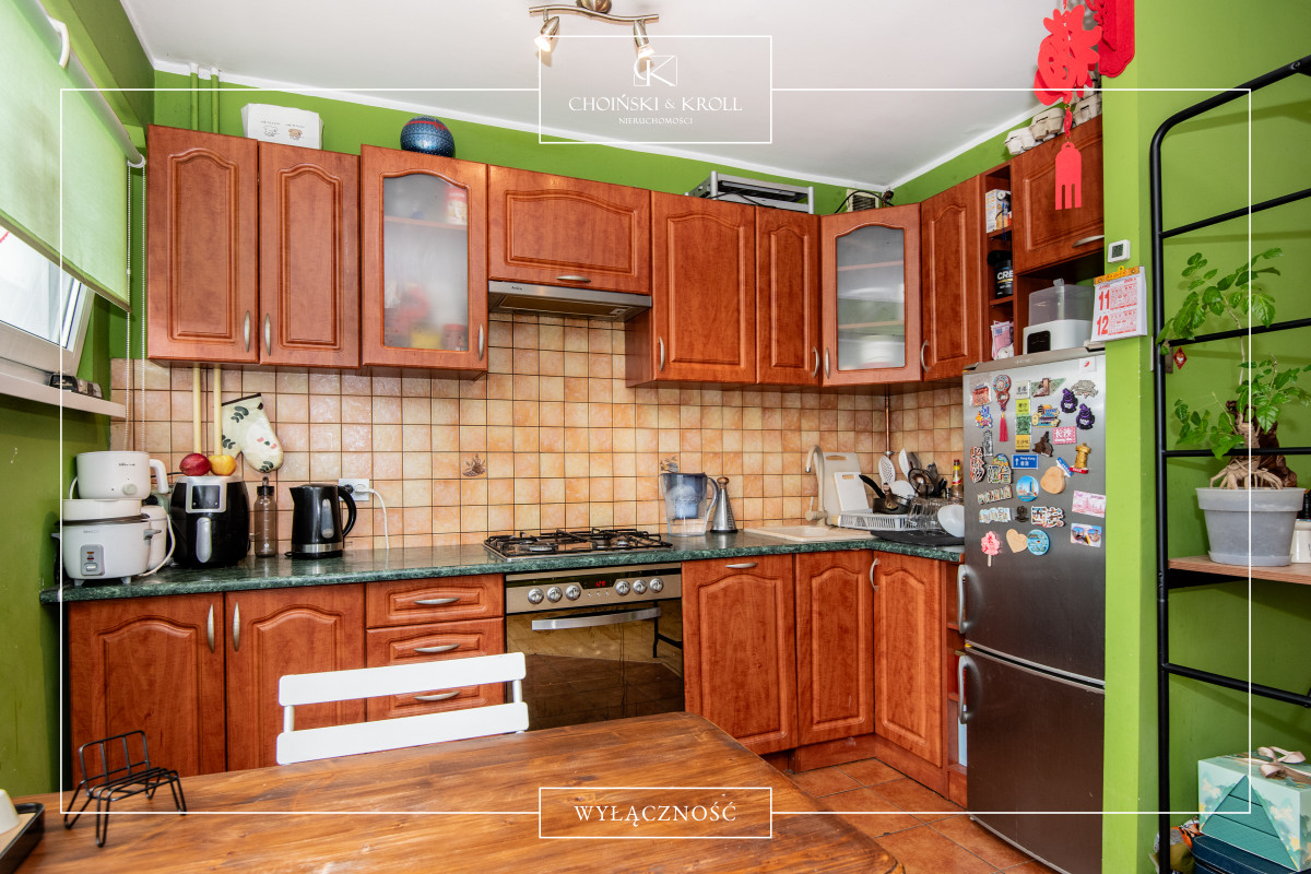 - przestronna kuchnia z zabudową na wymiar i AGD połączona z salonem
