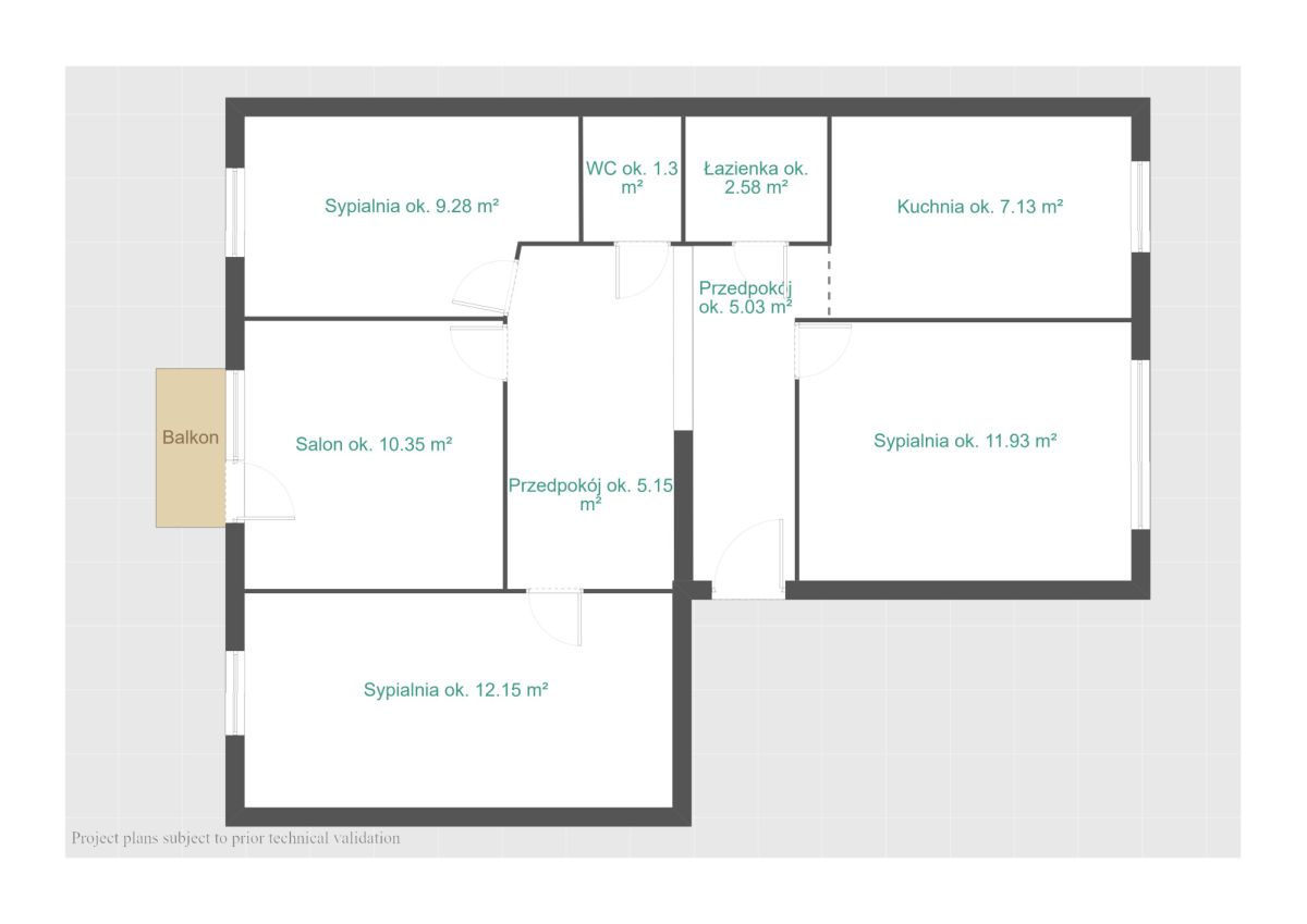 Układ mieszkania: niezależny z oddzielną, jasną kuchnią, salon z wyjściem na balkon, trzech sypialni, łazienka oraz toaleta.