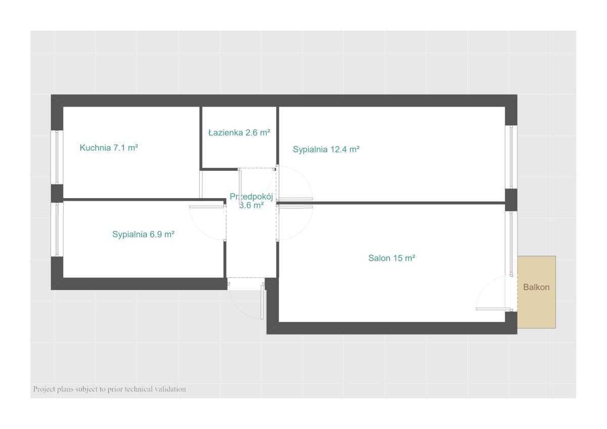 Układ mieszkania: niezależny z oddzielną, jasną kuchnią, salon z wyjściem na balkon, dwie sypialnie, łazienka z toaletą.