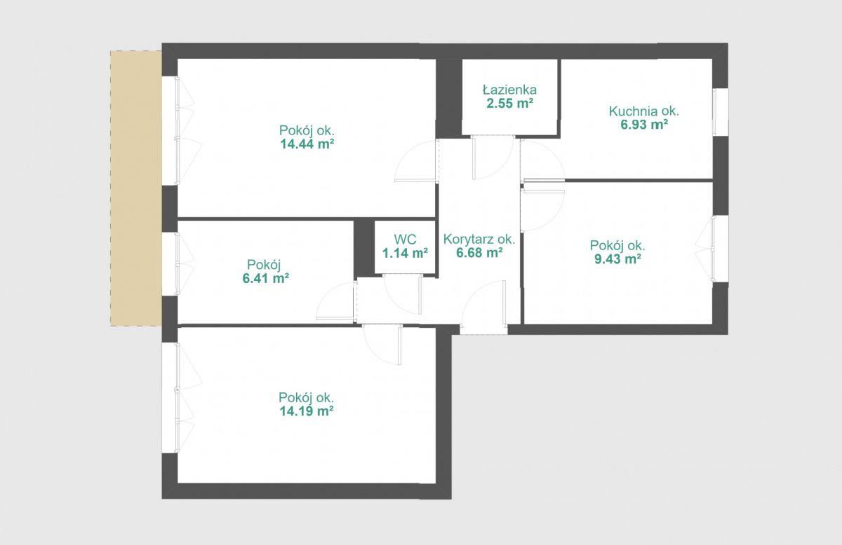 Mieszkanie o powierzchni 61,20 m2 składa się z: