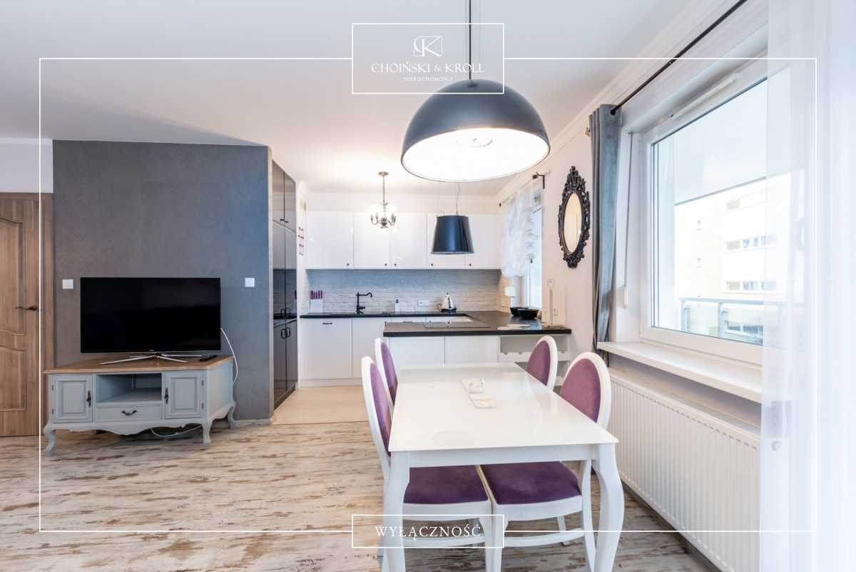WYPOSAŻENIE:• kuchnia wyposażona w lodówkę, piekarnik płytę indukcyjną oraz zmywarkę.