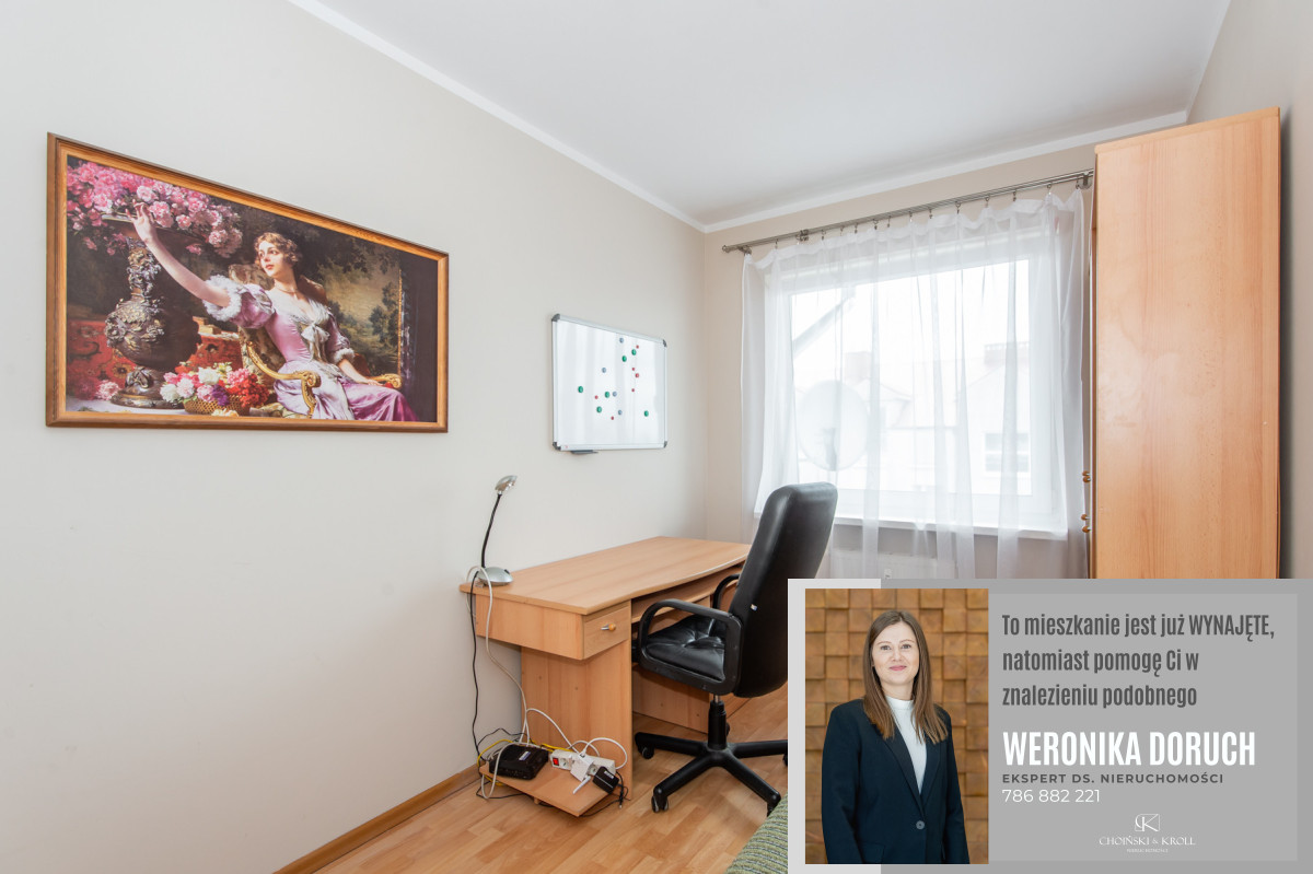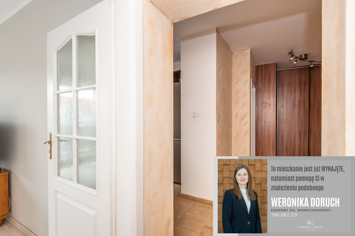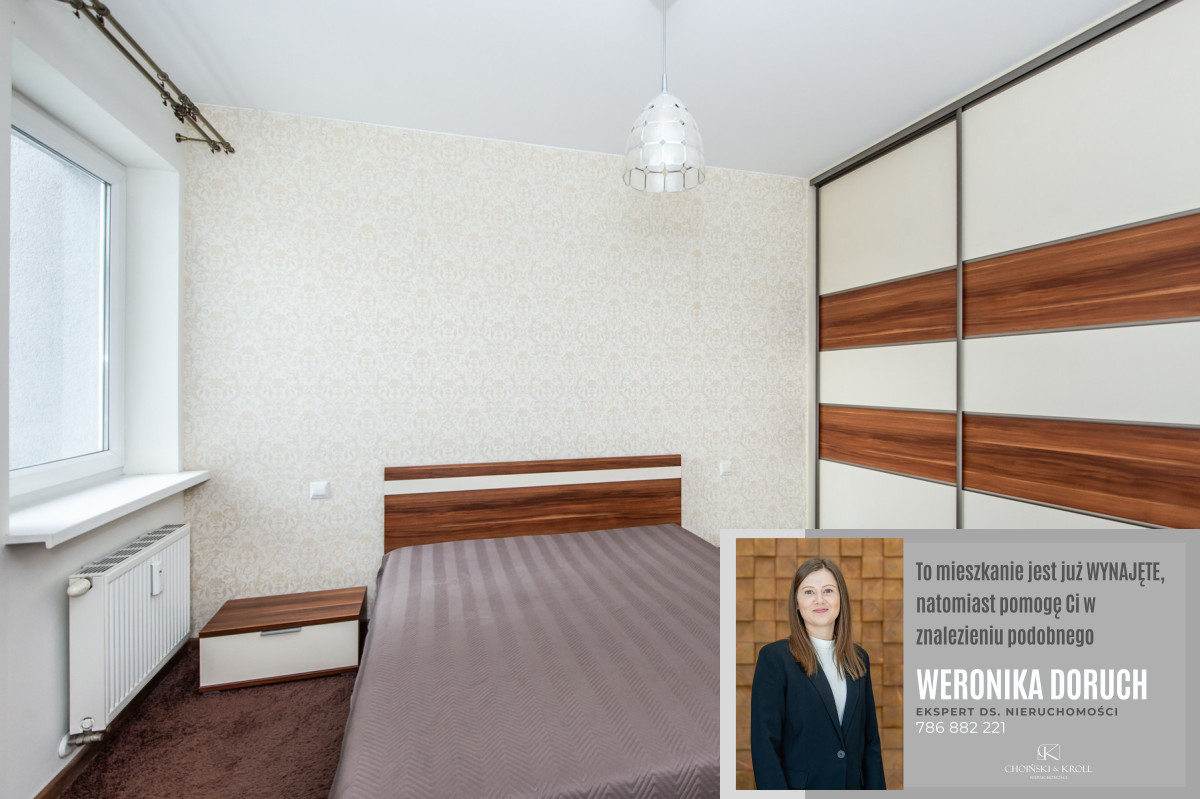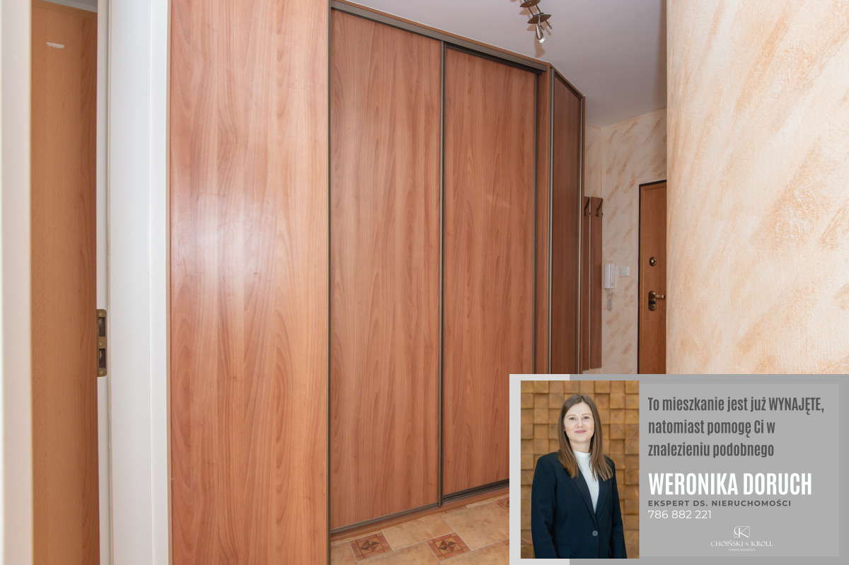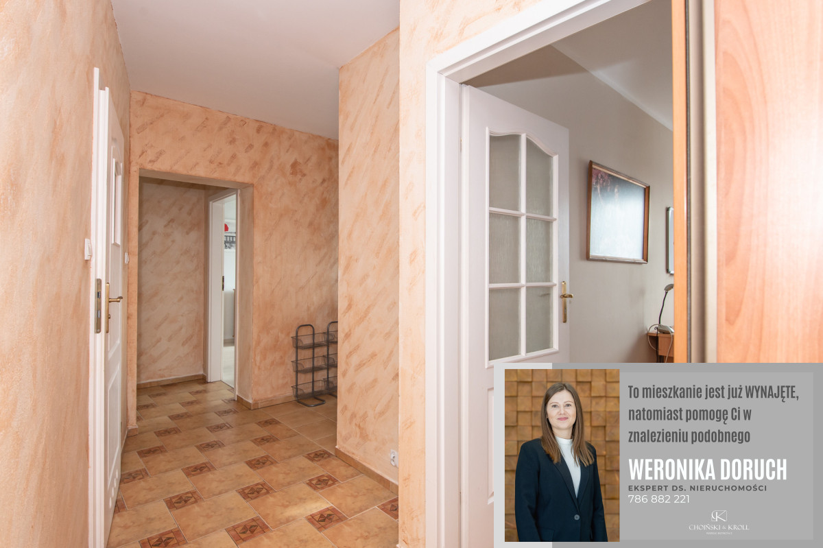 Lokal posiada niezależny układ - salon oraz dwie sypialnie, oddzielną, otwartą na korytarz kuchnię z oknem oraz łazienkę i osobną toaletę, a przez całe mieszkanie prowadzi przestronny korytarz z pojemnymi szafami w zabudowie. Jego układ sprawia, że w mieszkaniu odnajdzie się każdy, jest w pełni wyposażone oraz umeblowane.