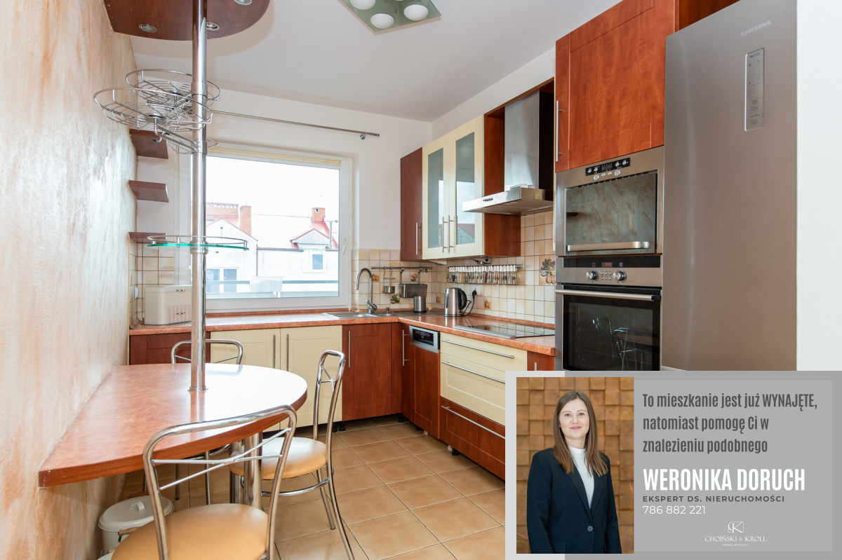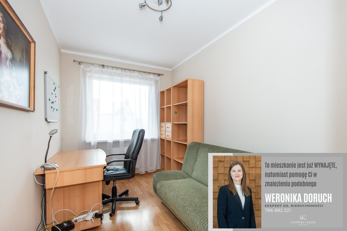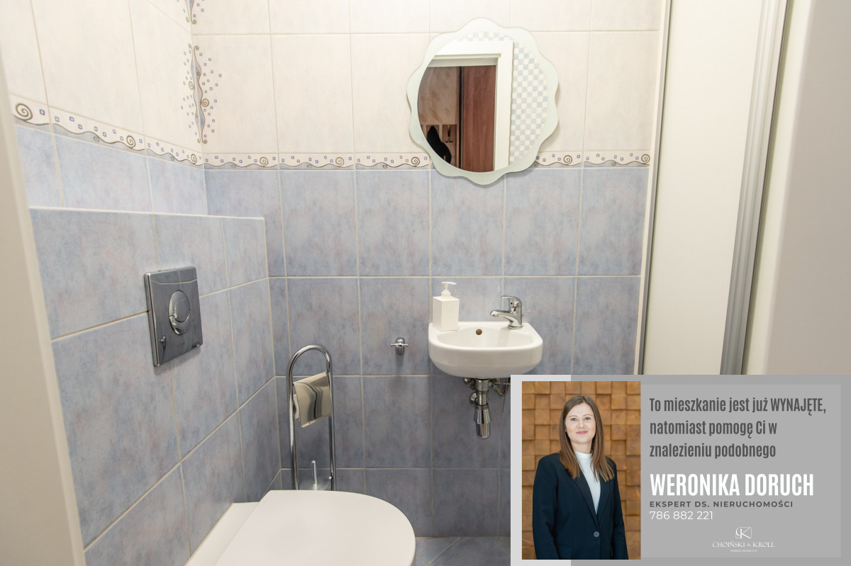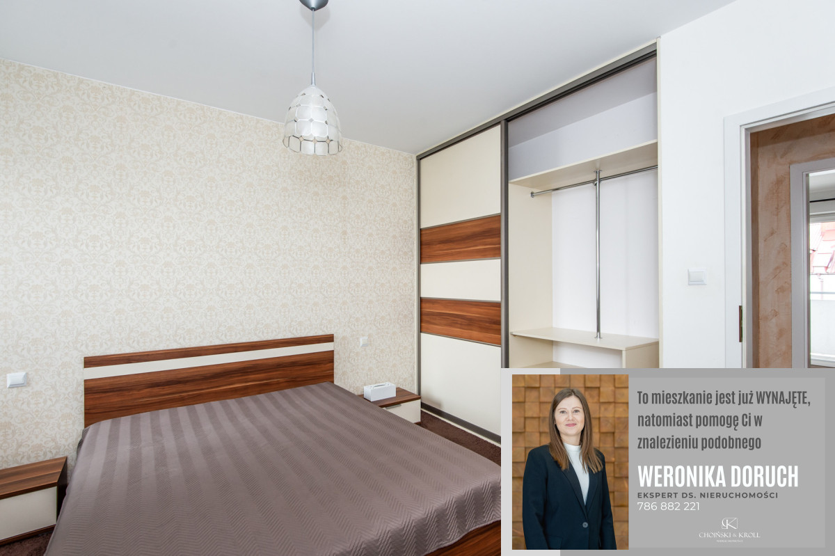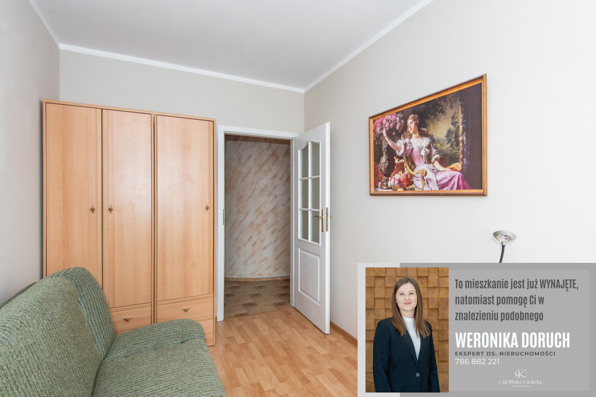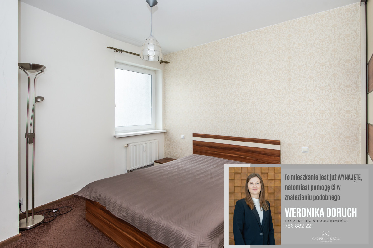 Lokal posiada niezależny układ - salon oraz dwie sypialnie, oddzielną, otwartą na korytarz kuchnię z oknem oraz łazienkę i osobną toaletę, a przez całe mieszkanie prowadzi przestronny korytarz z pojemnymi szafami w zabudowie. Jego układ sprawia, że w mieszkaniu odnajdzie się każdy, jest w pełni wyposażone oraz umeblowane.