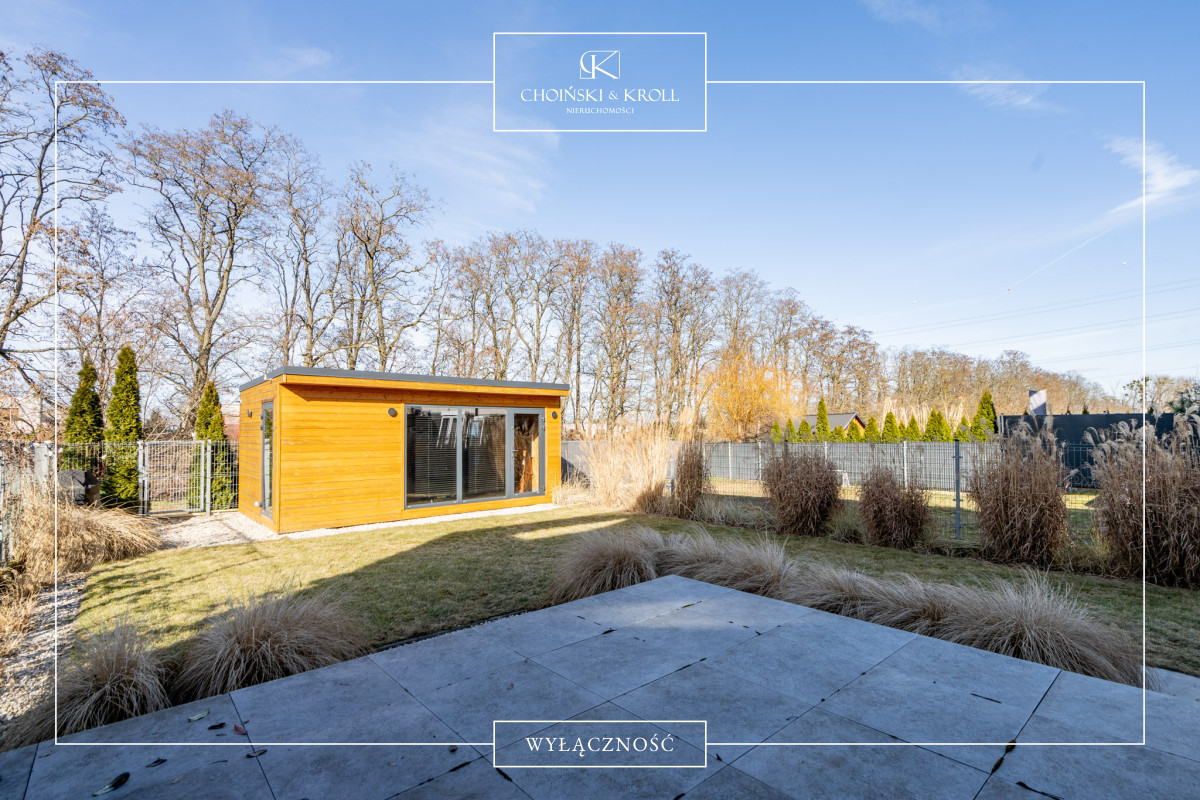 • na ogrodzie klimatyzowany domek wraz z oddzielnym pomieszczeniem gospodarczym o łącznej powierzchni około 18 m2