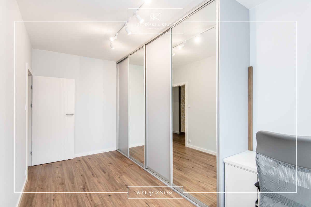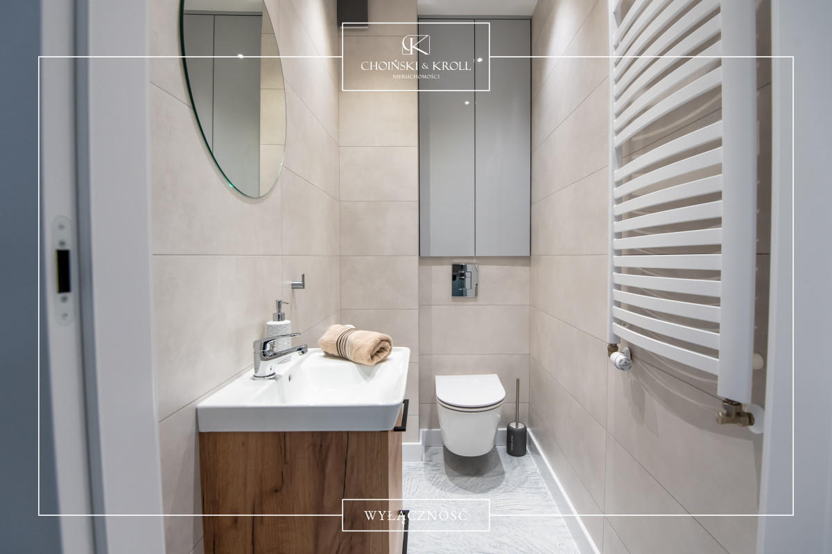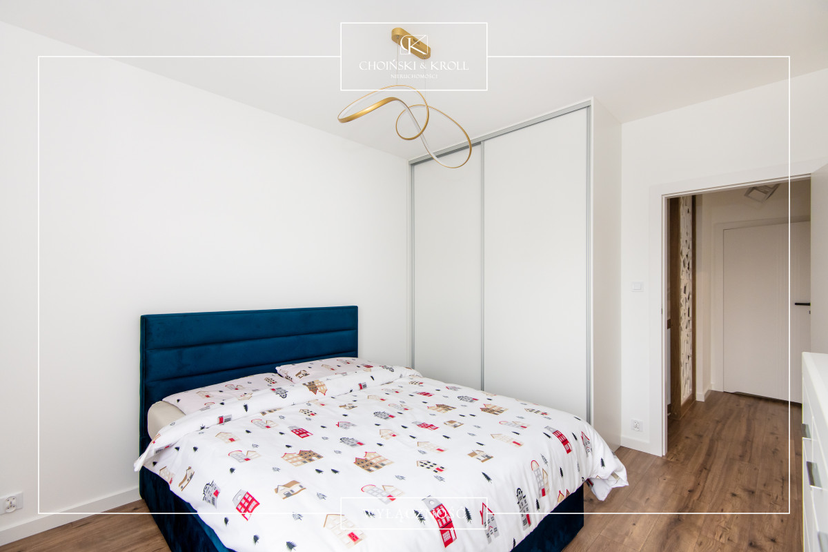 • Wnętrze: Dwupoziomowe mieszkanie, nie wymagające wkładu własnego jest w pełni wykończone, przy użyciu wysokiej jakości materiałów oraz umeblowane i wyposażone w sprzęt AGD. Dodatkowo niewątpliwym atutem jest brak skosów w pokojach na piętrze.
