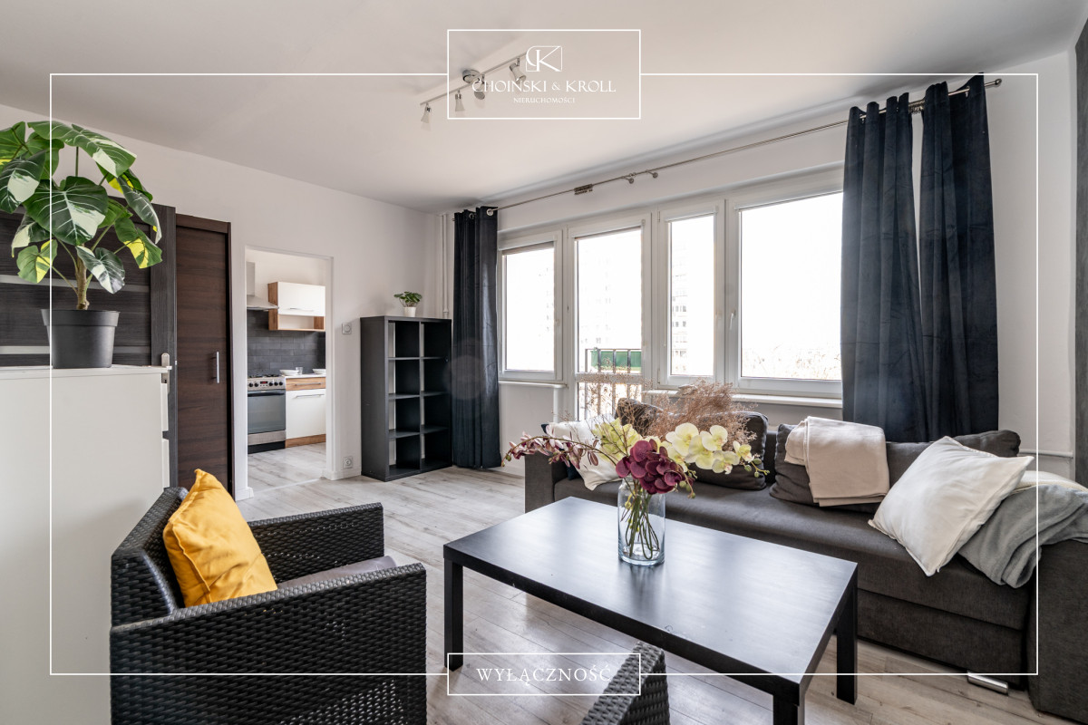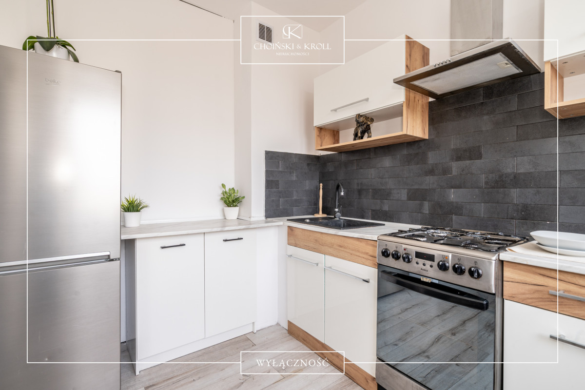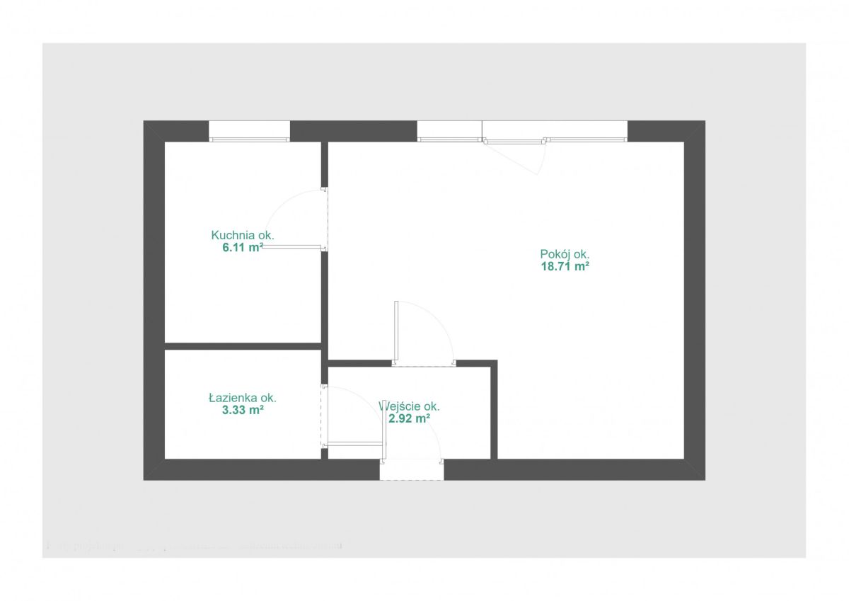Układ mieszkania: duży pokój, kuchnia z oknem, łazienka z toaletą