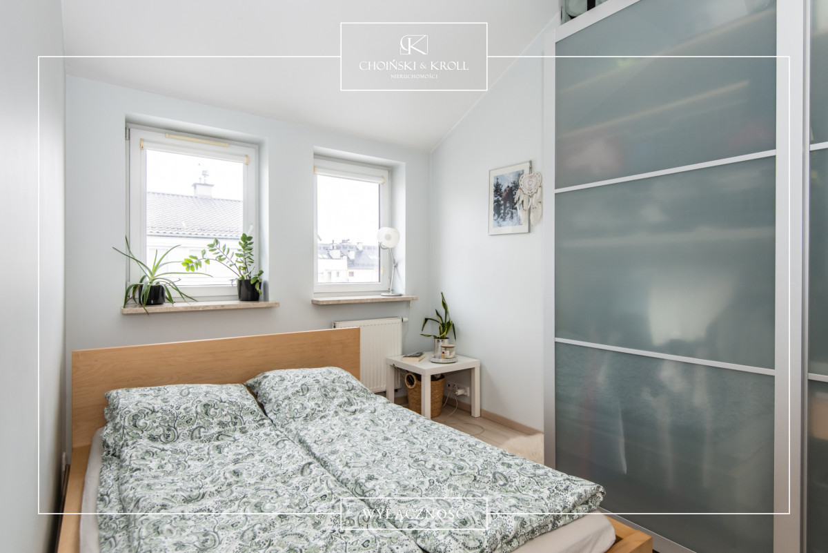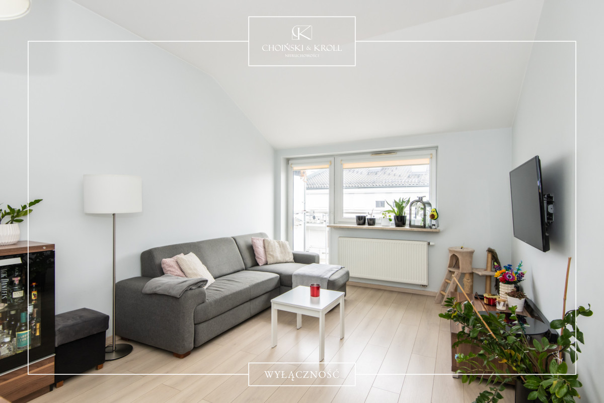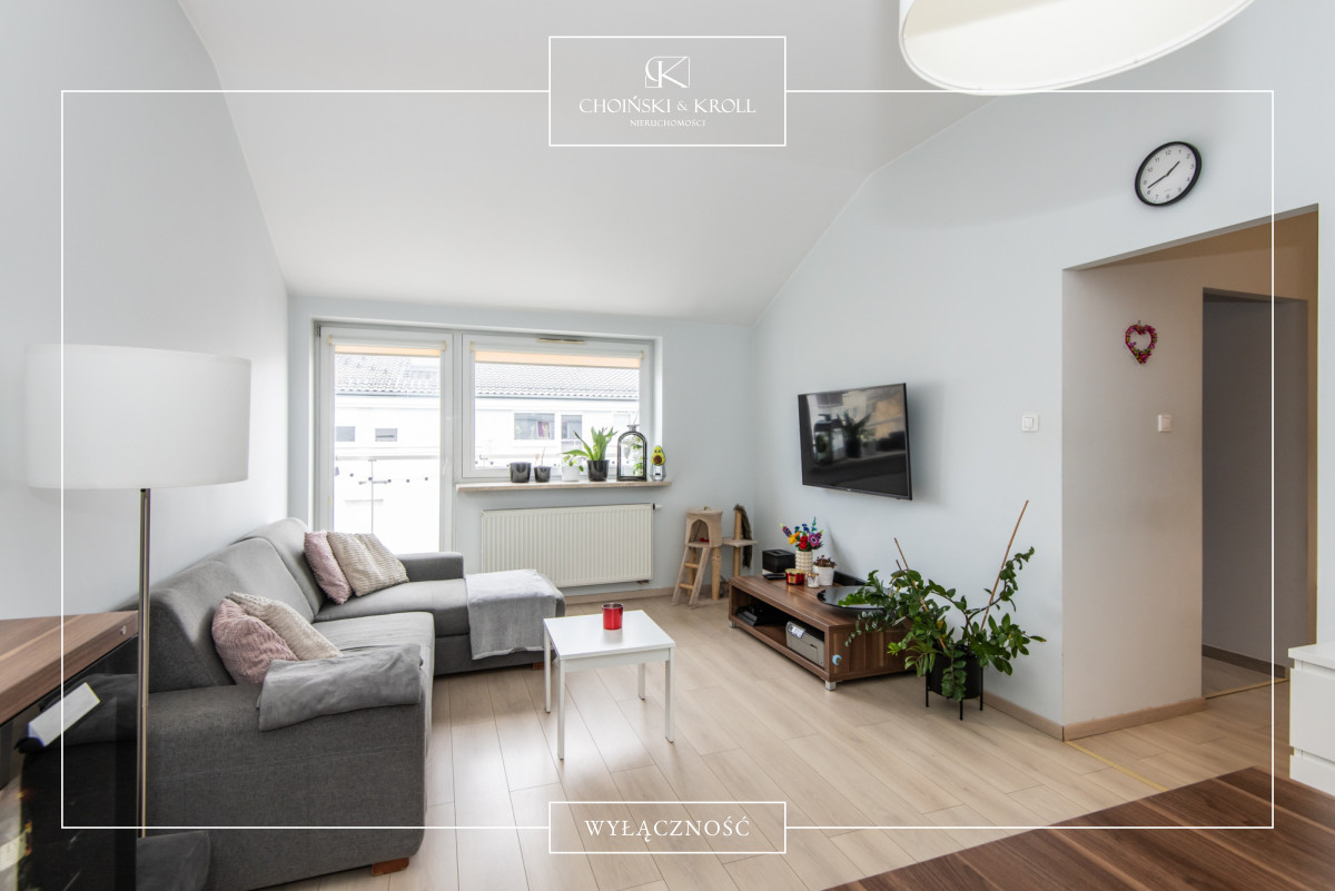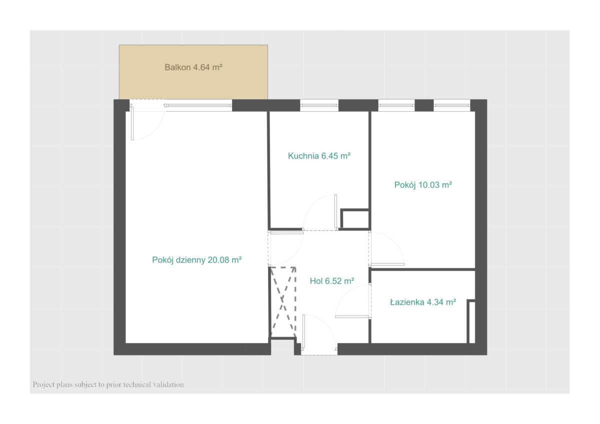 Układ mieszkania: salon z wyjściem na balkon, kuchnia, sypialnia, łazienka z toaleta.