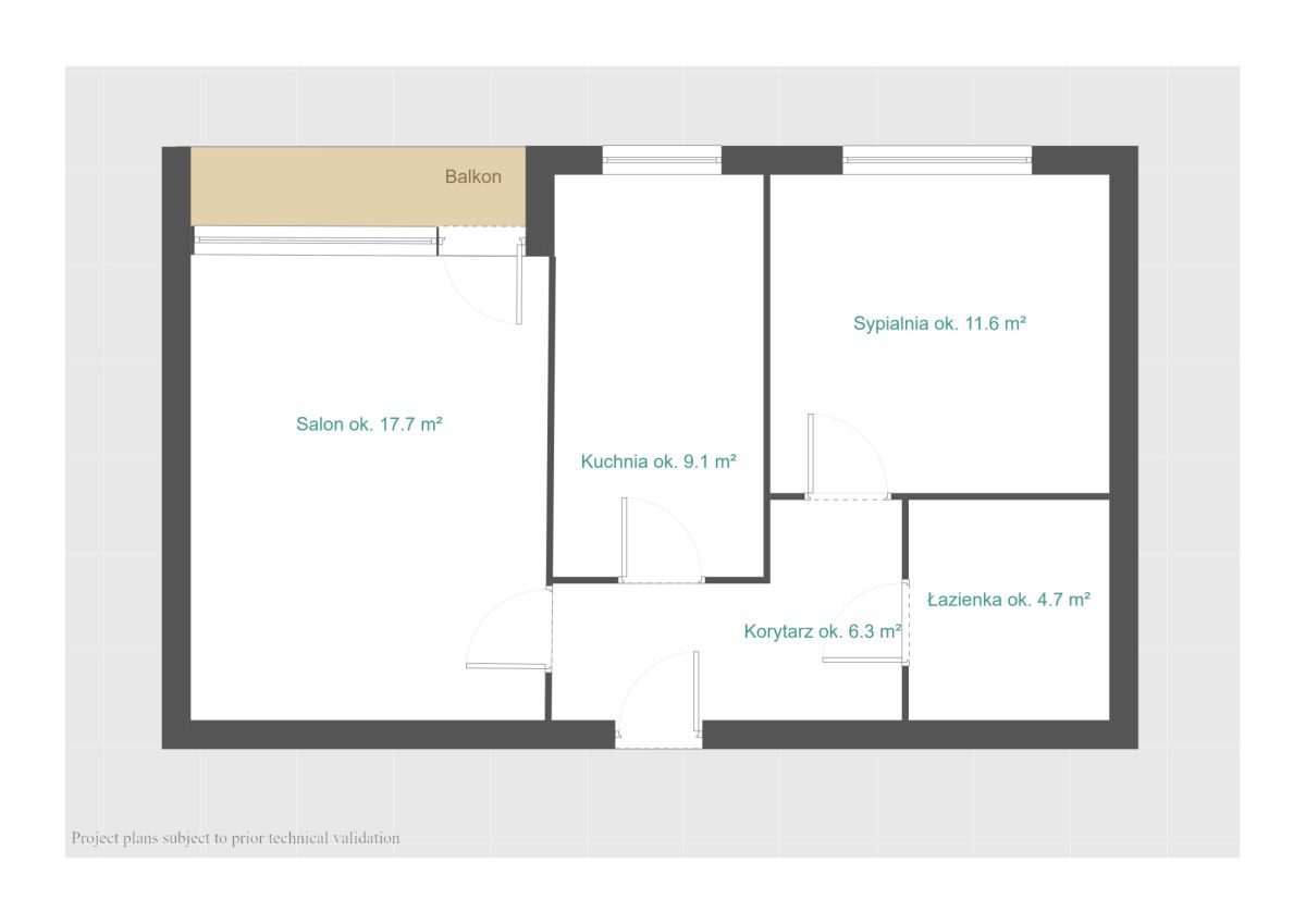 - korytarza - ok. 6,3 m2