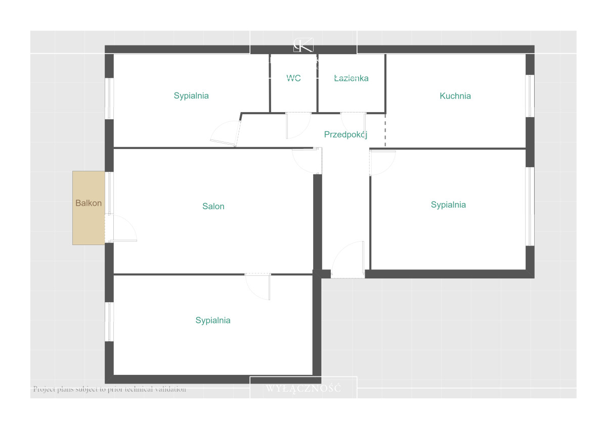 ● Wystawa okien: wschodnia (salon i dwa pokoje) oraz zachodnia (kuchnia i pokój).
