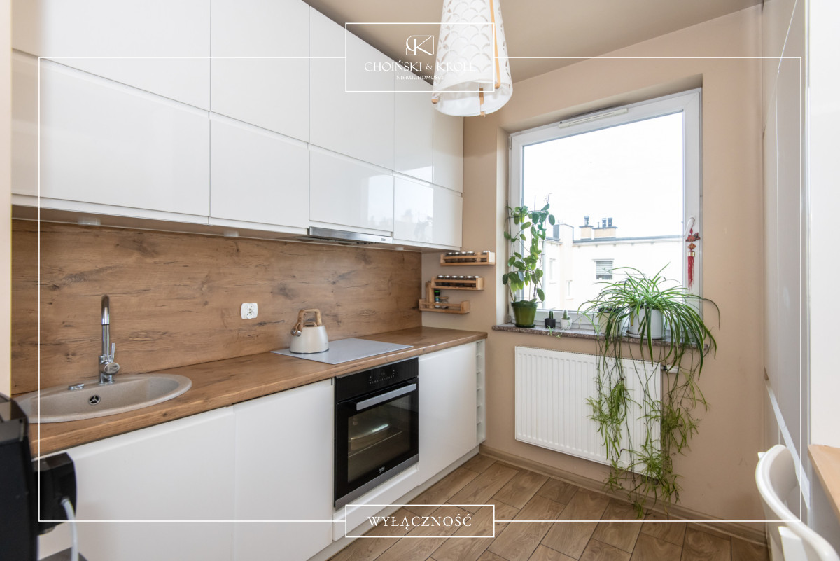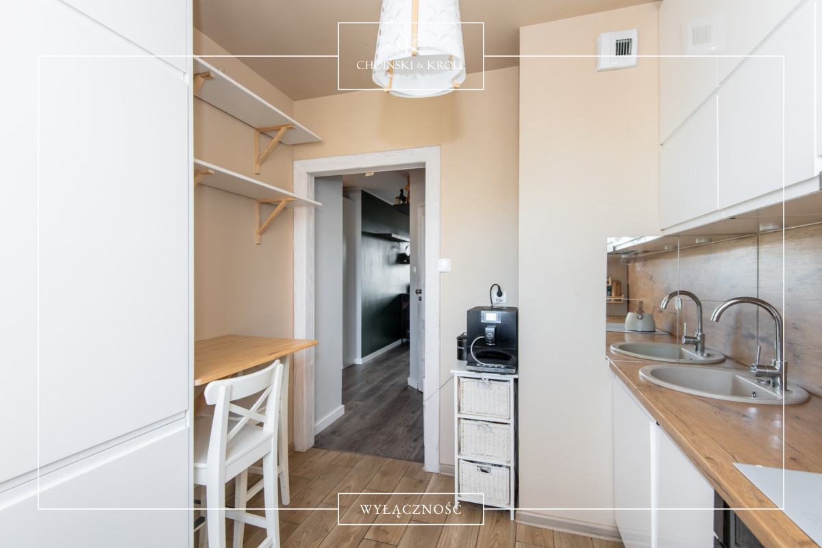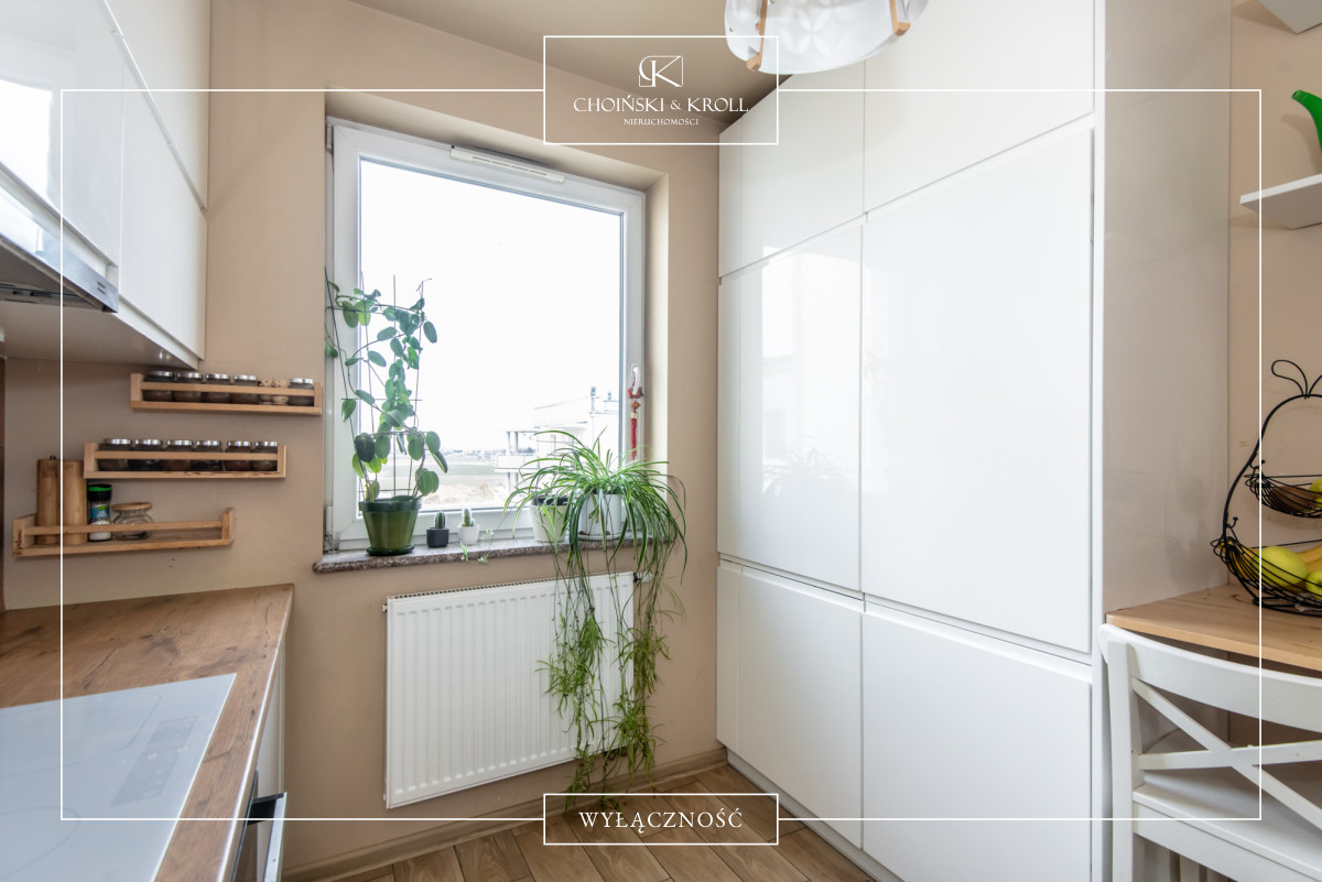 • osobna, jasna kuchnia z zabudową na wymiar i stolikiem
