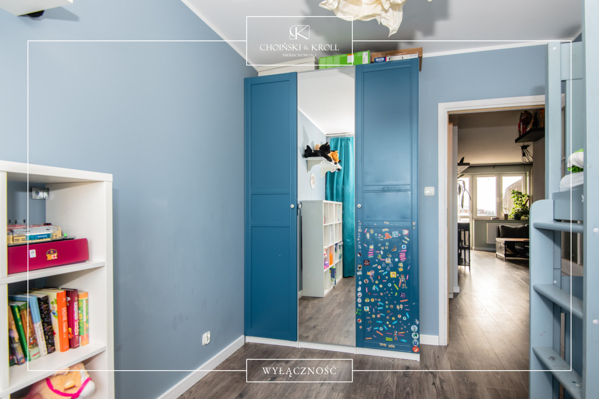 • plac zabaw widoczny z okna kuchni i sypialni (mniejszego pokoju)